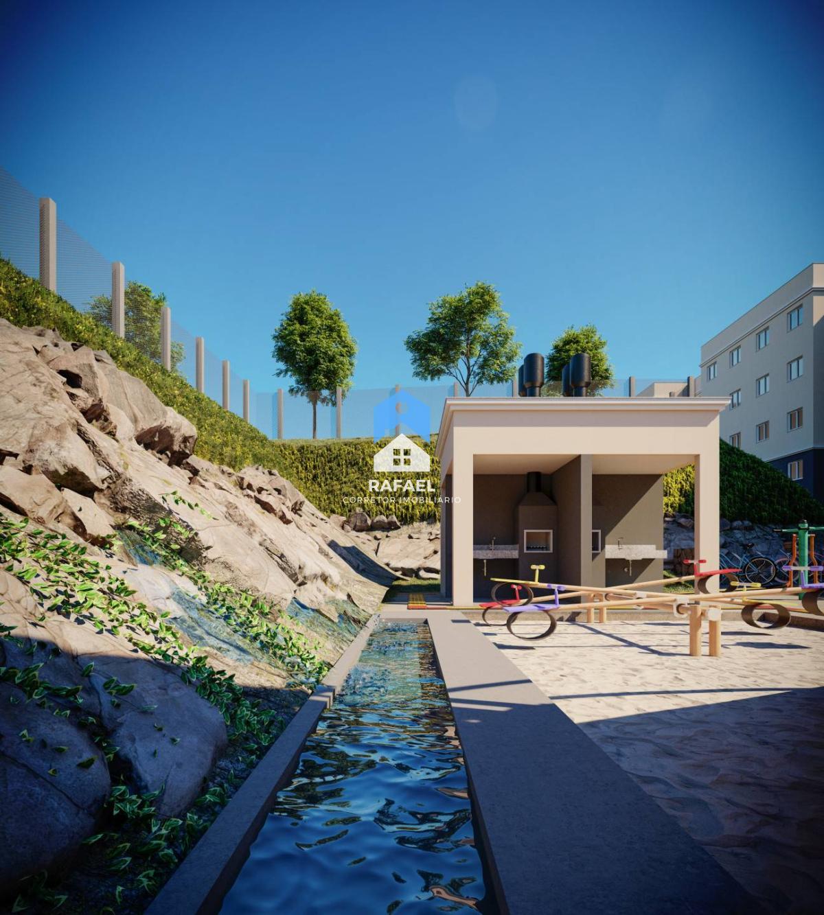 Salão de festas, quiosque, fonte, academia, lareira ao ar livre, bicicletário e pergolado com vista panorâmica de Caxias do Sul e vales;