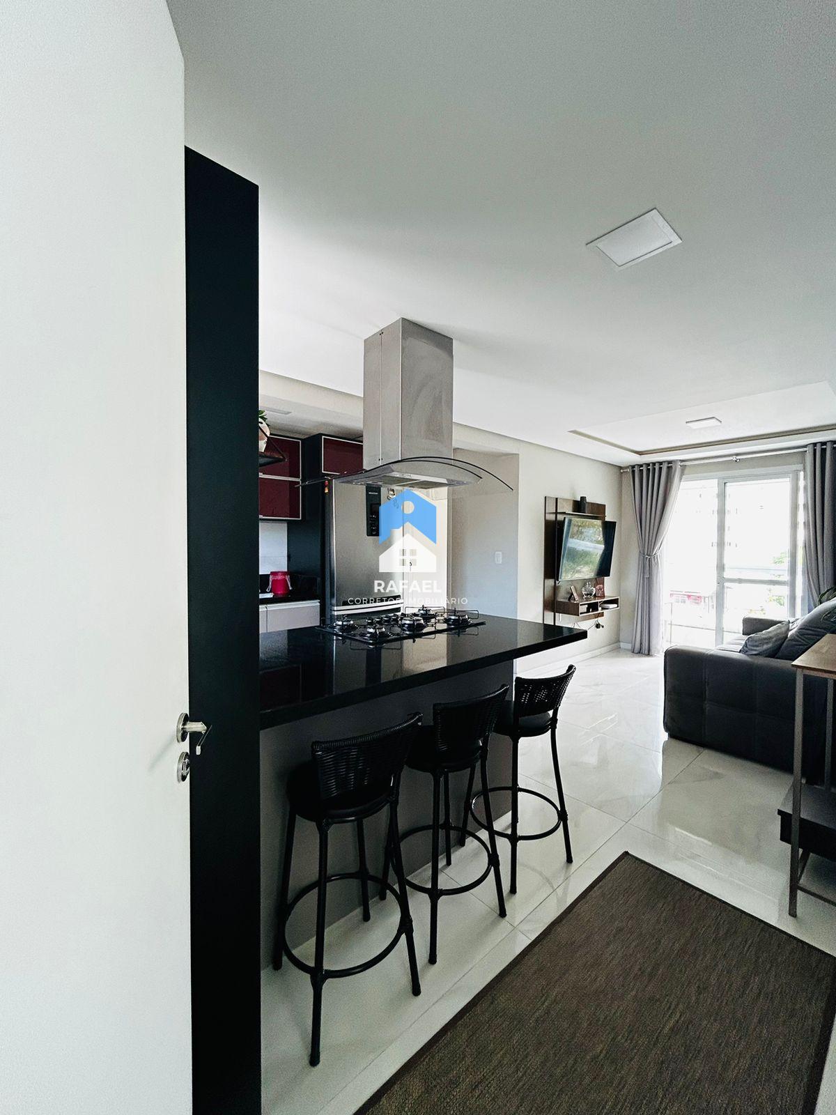 Ficam no apartamento: móveis da cozinha, roupeiro sob medida, e painel da sala;