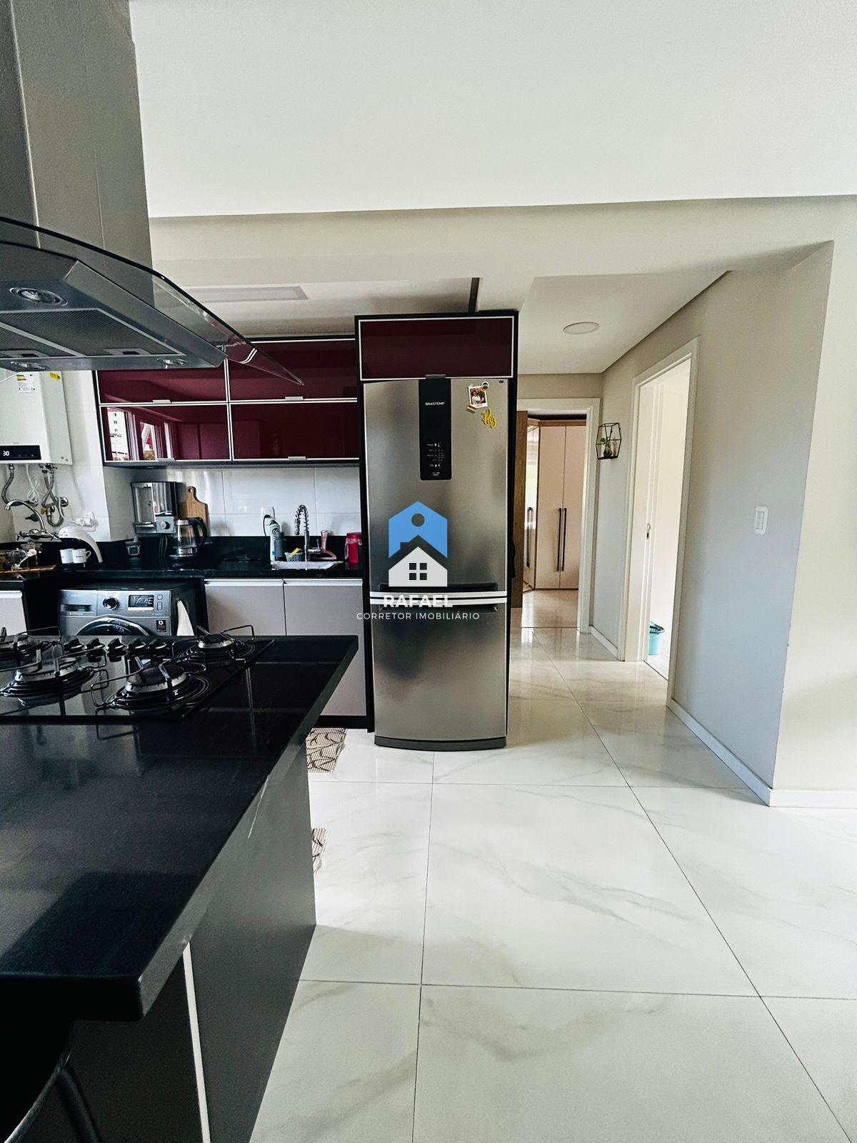 Cozinha possui tanque embutido a sacada fechada com abertura quase total e churrasqueira;