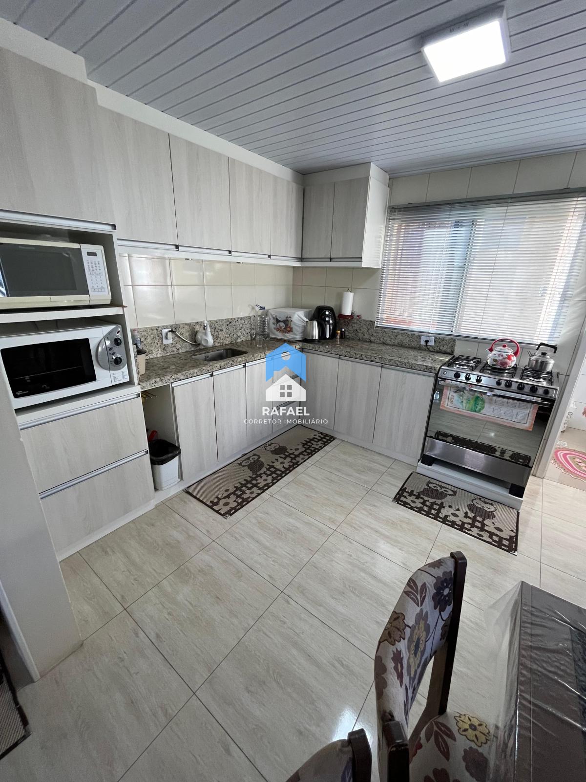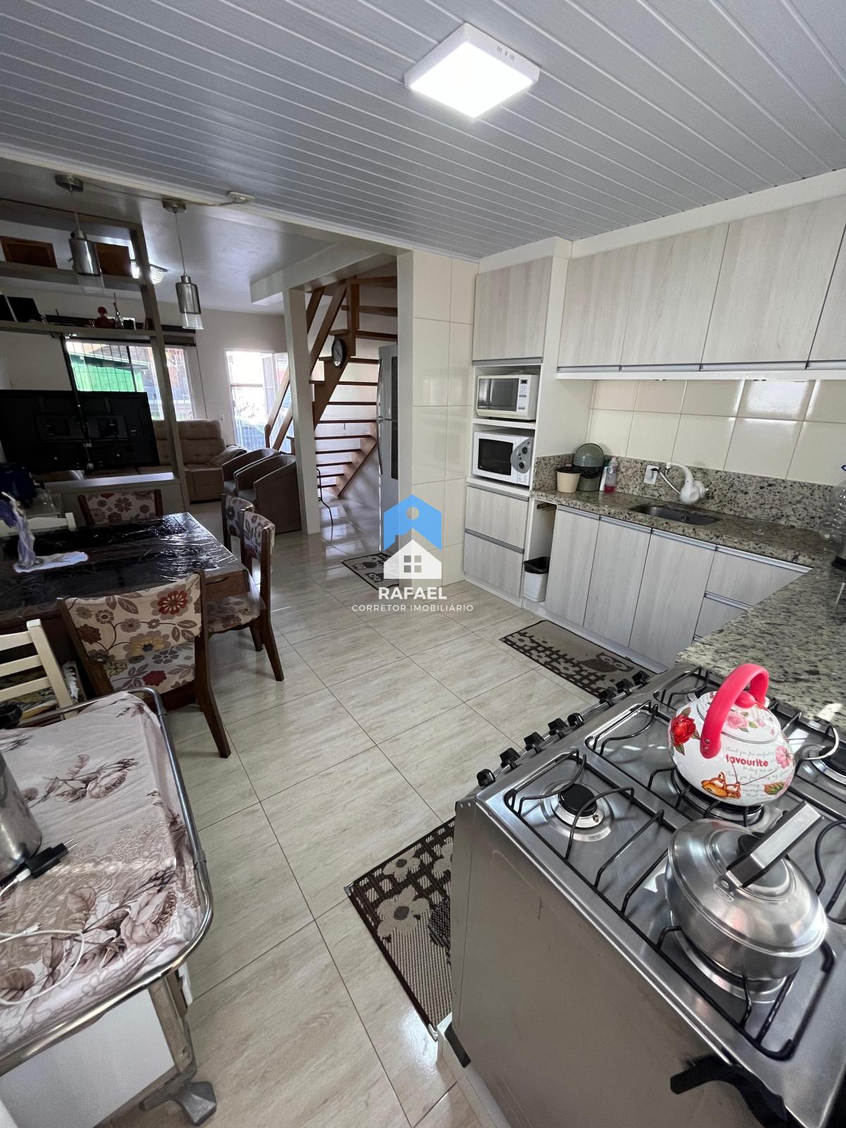 Cozinha, sala de jantar, sala de estar;
